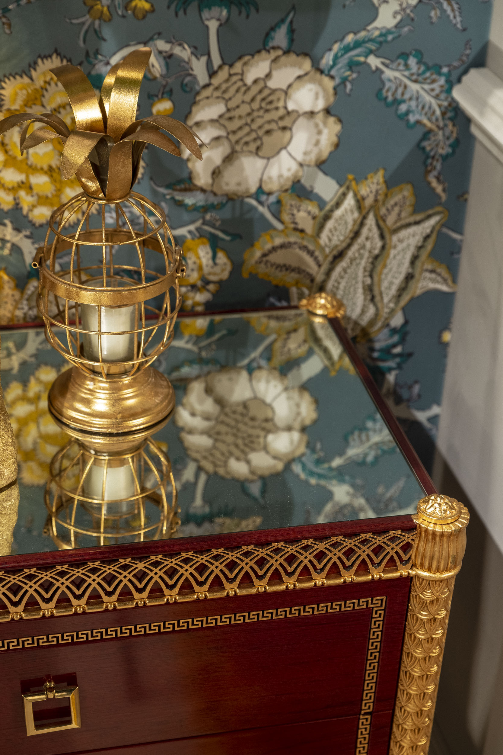 Finally we added pieces with gilded and mirror details and decorative elements to recover the historical use of the pineapple as a signifier of wealth.