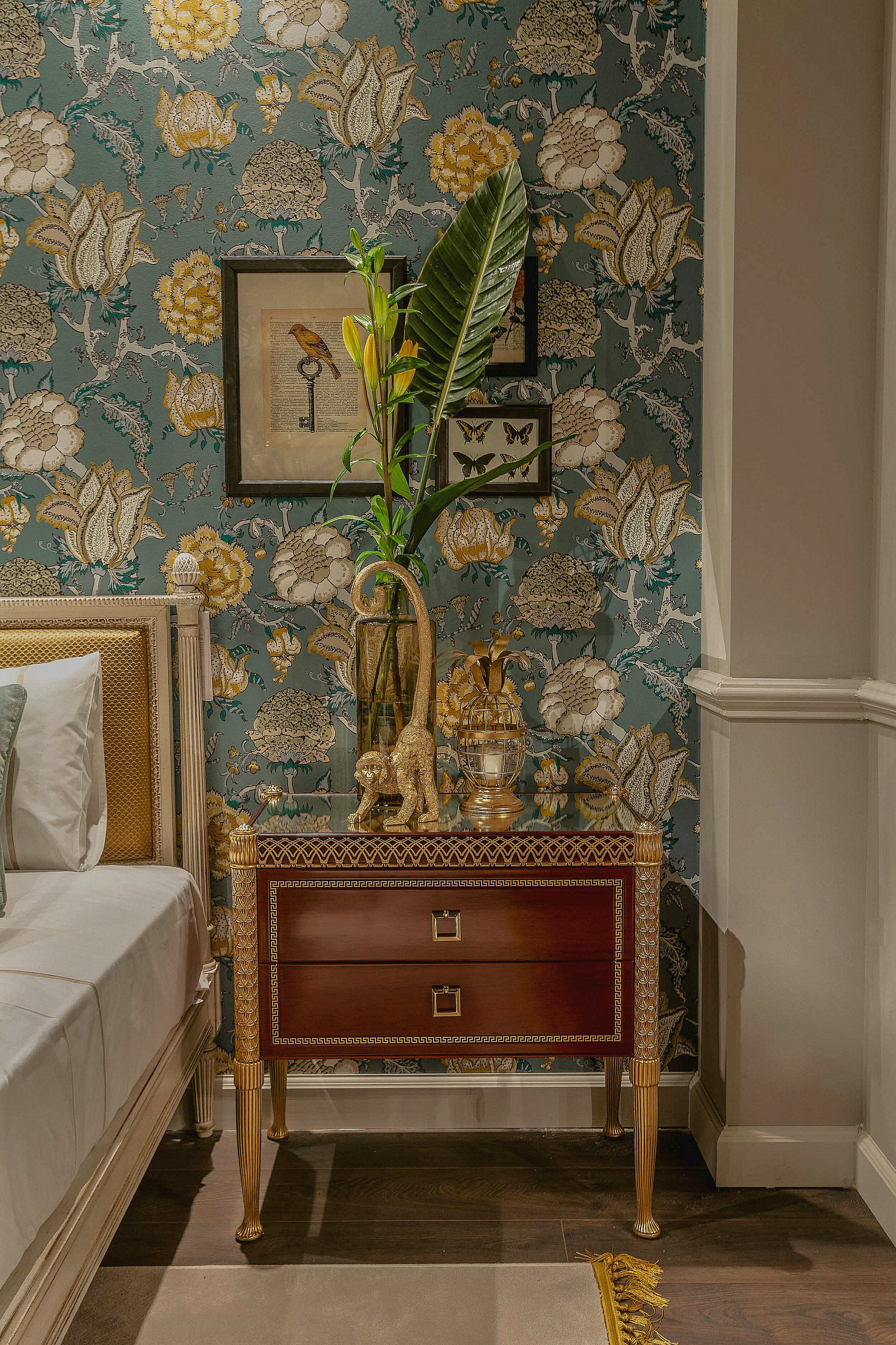 We have used the pineapple’s shape, colors and patterns sparingly alongside white finishings to add a colonial feel to our classic bedroom. We made precious carvings on wood and chose sophisticated textures similar to those of pineapple.